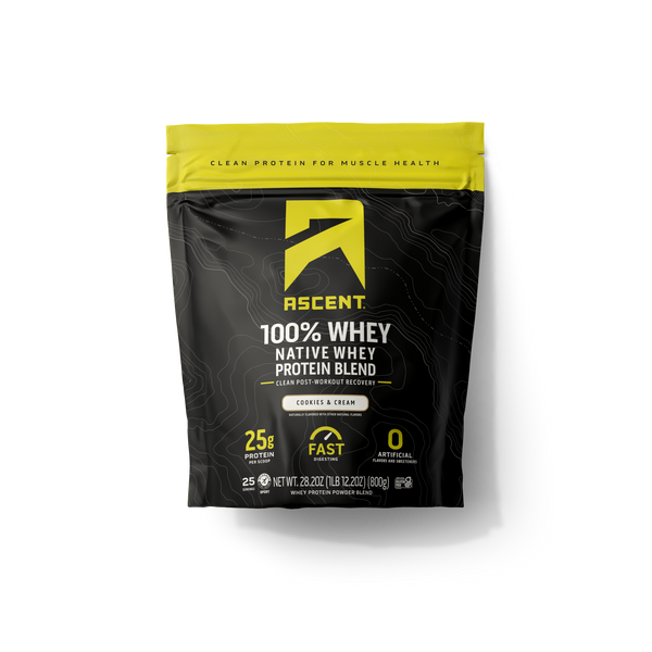 Ascent Cookies & Cream 100% Whey Protein makes the perfect post-workout drink for muscle recovery. This great-tasting whey protein powder also contains: